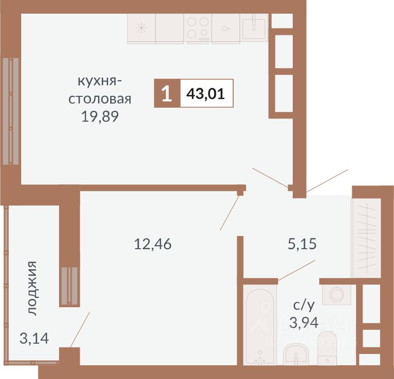 Общая площадь43,01 м2