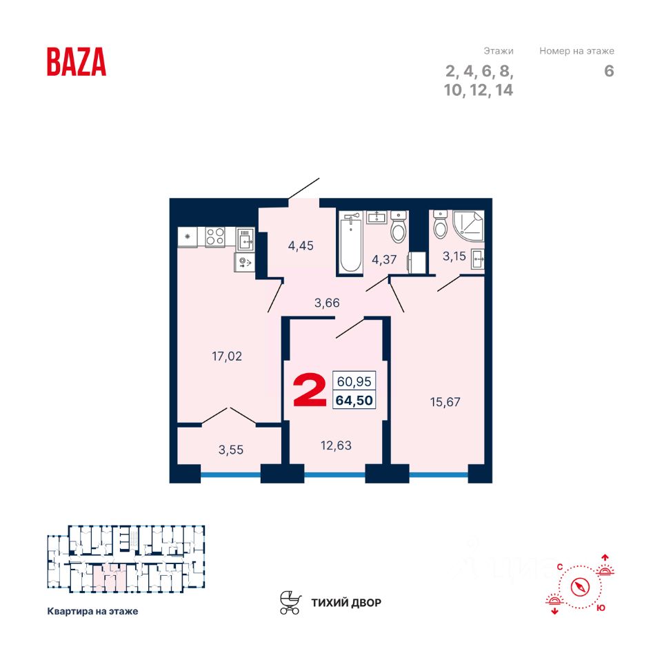 Продаётся квартира в ЖК ''Тёплые кварталы''. 2-комнатная квартира, 64,5 м², 402, Очередь 3, дом 2. Стоимость указана с учетом чистовой отделки.