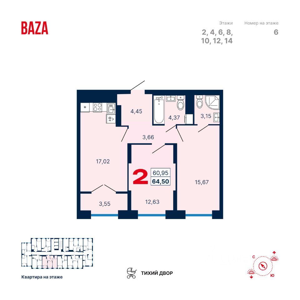 Общая площадь64,5 м2