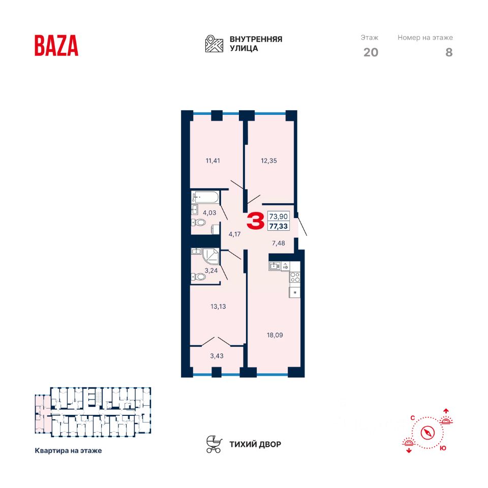 Общая площадь77,33 м2
