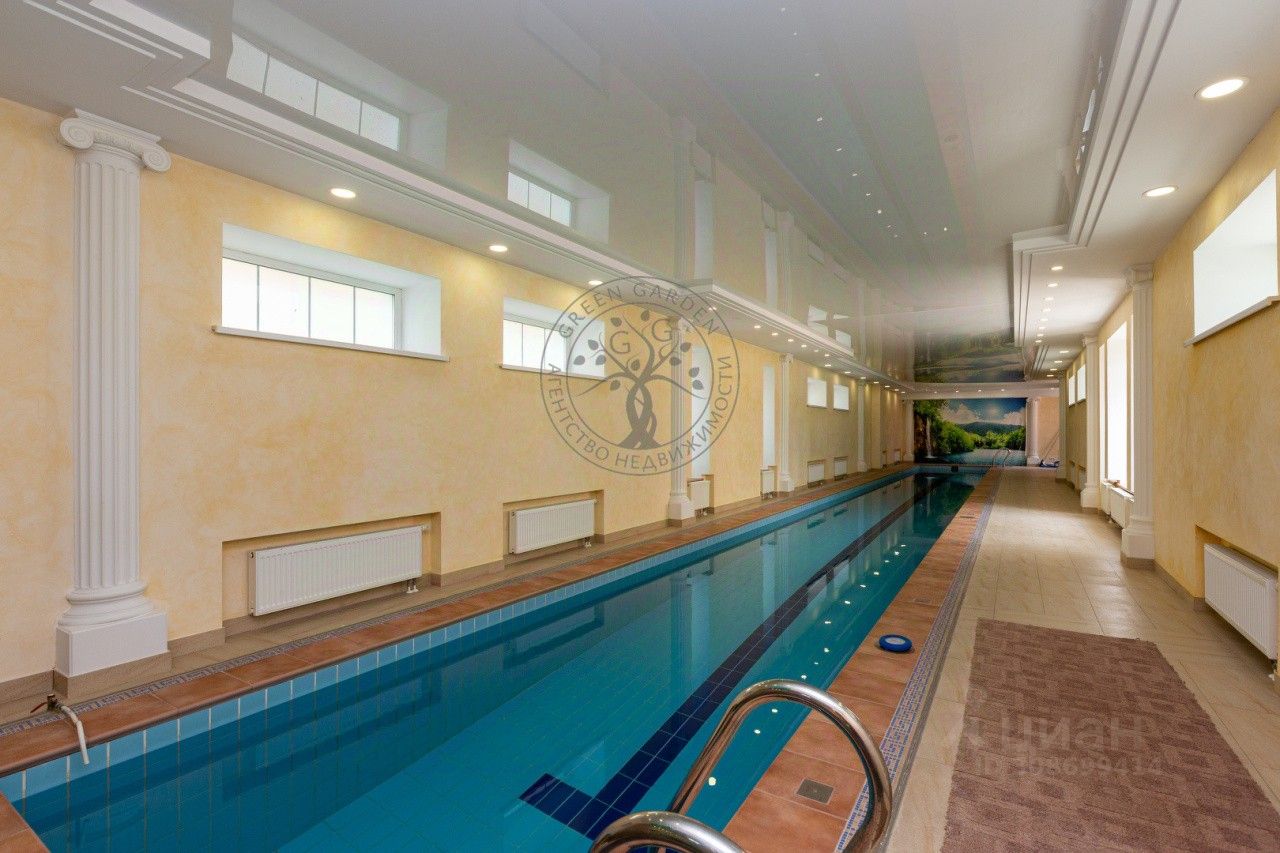 Жемчужина имения - Отдельный комплекс с бассейном: Собственный 25-метровый бассейн для спортивного плавания и отдыха. Настоящая русская баня с купелью и долгоиграющей печью (держит жар сутки). Зона отдыха, летняя кухня с печью для гриля и выпечки, солярий. Технический подвал: система очистки бассейна, автоматический полив участка, мастерская.
