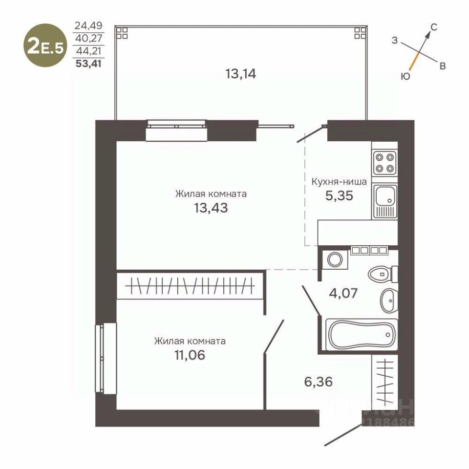 Общая площадь44,21 м2