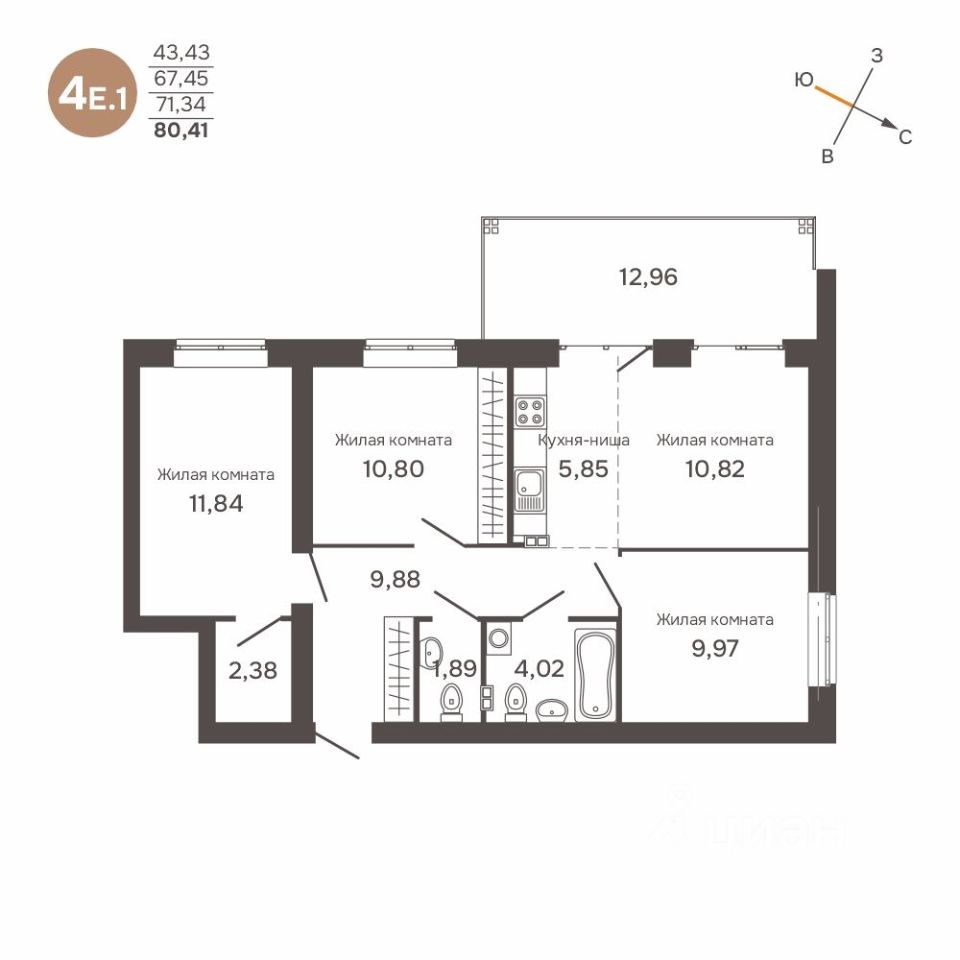 Общая площадь71,34 м2