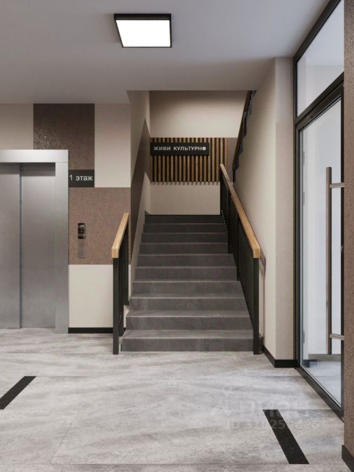 Места общего пользования Отделка холлов в ЭКО-стиле, выполненная в природных цветах по уникальному дизайн-проекту, специально разработанному для ЖК ''Культура''.