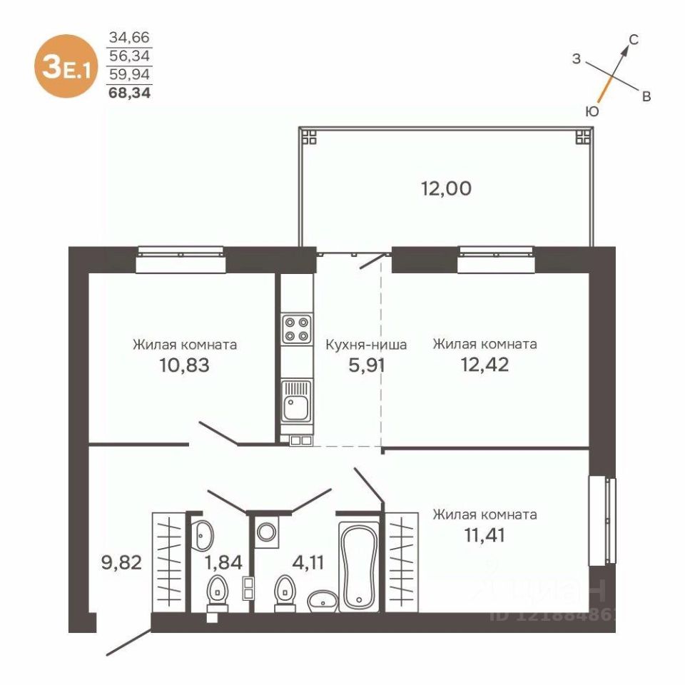 Общая площадь59,94 м2