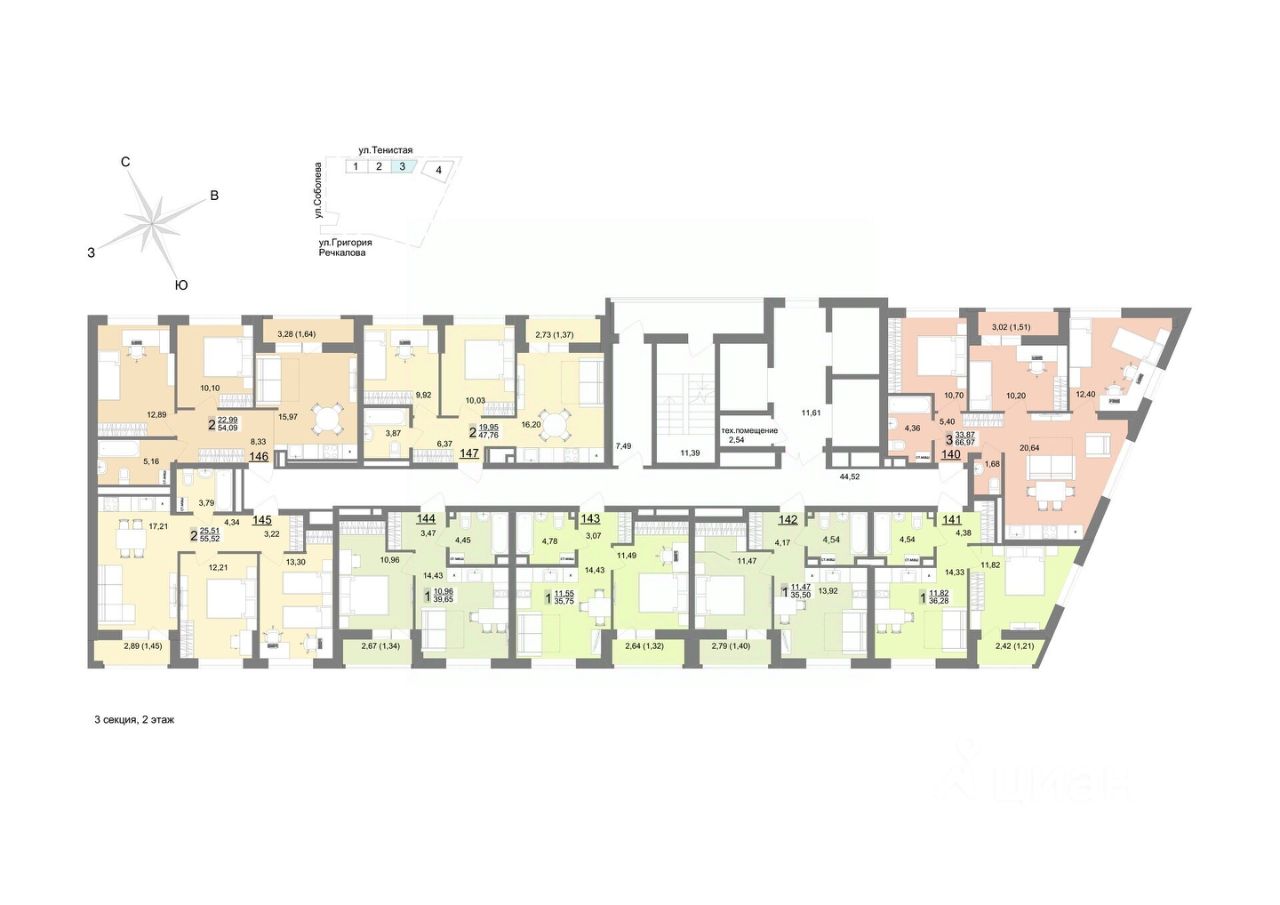 Семейный квартал ''На Тенистой'' будет состоять из 7 домов переменной этажности и паркинга. 1-я и 2-я очереди уже построены, сейчас активно возводится 3-я очередь и готовится к старту 4-ая очередь квартала. Квартал расположен на Широкой речке в самом молодом и современном районе - Академический, на пересечении улиц Тенистая-Краснолесья-Соболева. Вы сможете пользоваться преимуществами сразу нескольких районов: Широкая речка, Академический, Верх-Исетский и Юго-Западный! 30 минут до центра города на машине, 9 минут до Объездной дороги, если хочется выехать на природу. В шаговой доступности есть несколько школ, детских садов и спортивных секций. А еще один детский сад на 350 мест уже построен на территории самого квартала. Закрытый большой двор с ландшафтным дизайном Просторный двор, укрытый от городской суеты стенами домов, объединит все очереди жилого квартала ''На Тенистой''. К завершению строительства общая площадь двора составит впечатляющие 32 тыс. м², предоставляя достаточно места для отдыха и активности на любой вкус. Двор, разделят на рекреационные зоны по возрастам. Будут площадки для малышей и подростков с безопасным покрытием, зоны ворк-аута для предпочитающих здоровый образ жизни, прогулочные дорожки для бесед с друзьями или соседями. Живые зелёные изгороди, словно природная завеса, обеспечат чувство уединённости, защищая жителей первых этажей от посторонних взглядов. Уютный сад с плитняковыми тропинками, изящными перголами и удобными столиками для перекусов на свежем воздухе станет идеальным местом для тёплых семейных вечеров и дружеских встреч. Вдоль прогулочных дорожек установят невысокие уличные фонари, которые создадут атмосферу тепла и уюта. По всему периметру двора появится велодорожка, огибающая игровые зоны. Она станет любимым маршрутом для велосипедных прогулок. Игровые площадки покроют травмобезопасной резиновой крошкой нежных оттенков, подобранных специально для привлечения внимания детей. Разнообразие малых архитектурных форм порадует каждого ребёнка: карусели, качели-гнездышки, батуты, тарзанки и игровые комплексы обеспечат активный досуг и весёлое времяпровождение. Для начинающих футболистов разместится мини-футбольное поле с качественным искусственным газоном, расположенное таким образом, что шум и радость детских игр не потревожат ваш покой. Здесь ваши дети смогут организовывать настоящие турниры и приглашать друзей на матчи, наслаждаясь каждым моментом активного отдыха. Во дворе жилого комплекса ''На Тенистой'' каждый найдёт занятие по душе! Безопасность и комфорт Безопасность - важное преимущество эко-квартала. Вход на территорию осуществляется с помощью Face ID или через мобильное приложение. Для вашего удобства предусмотрено три выхода с подземного паркинга. На территории квартала будет круглосуточное видеонаблюдение, обеспечивающее безопасность вам и вашим маленьким исследователям в каждом уголке двора. В секции 1Г предусмотрено удобное помещение с водоматом, так что в любое время вы сможете пополнить запасы воды без лиш