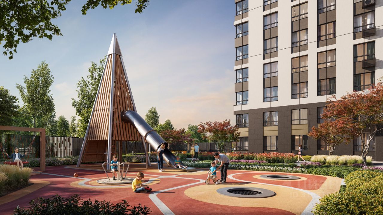 - фитнес-залы. Рядом удобный выезд на ЕКАД. Главная особенность проекта — угловое остекление, которое составляет 22% всей площади. Окна в квартирах установлены в 60 см от пола. Увеличенная площадь остекления помогает снизить затраты на энергоресурсы и создаёт уют в квартире. Сердце жилого комплекса — приватный двор-парк с игровыми комплексами, тренажерами, площадками.