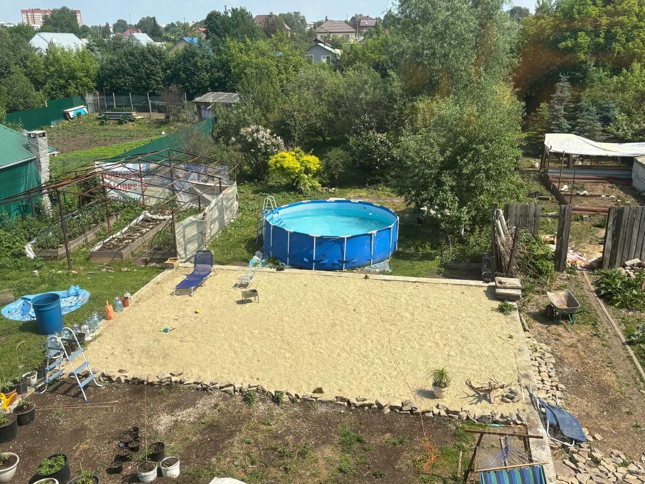 Дополнительные строения на территории: вольер для собак 2 шт навес для инвентаря курятник с подогревом 1 теплица - железный каркас 6х4 метров фундамент под теплицу 6х8 метров