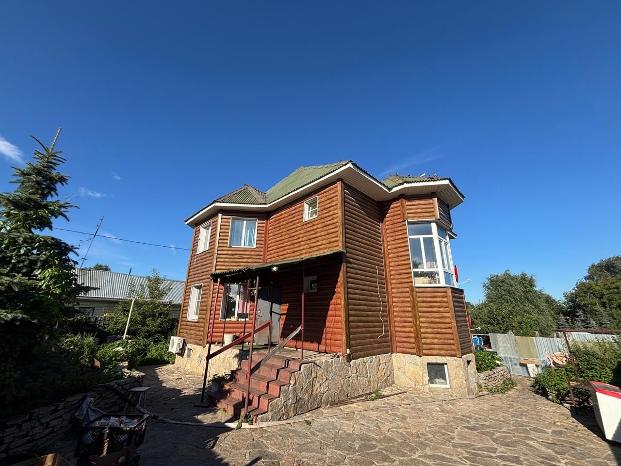 Этажность 2 + 1 этаж подземный (бункер) материал стен - пеноблок облицовка - металлический сайдинг под брус комнаты - 4 санузел - 2 шт кухня - 2 шт установлены пластиковые окна