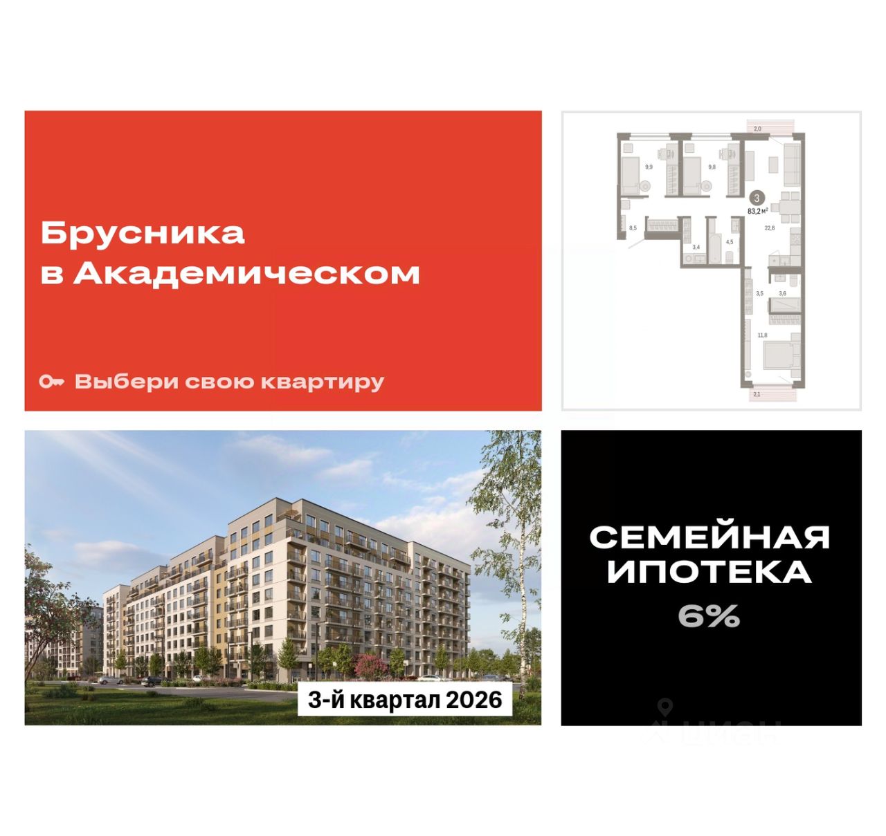 Квартал ''Брусника в Академическом'' расположен в границах улиц Ландау — Новая. Сегодня Академический — молодой, стремительно развивающийся район, обеспеченный всей необходимой инфраструктурой. С центром его связывают две магистральные улицы — Вильгельма де Геннина и Амундсена.