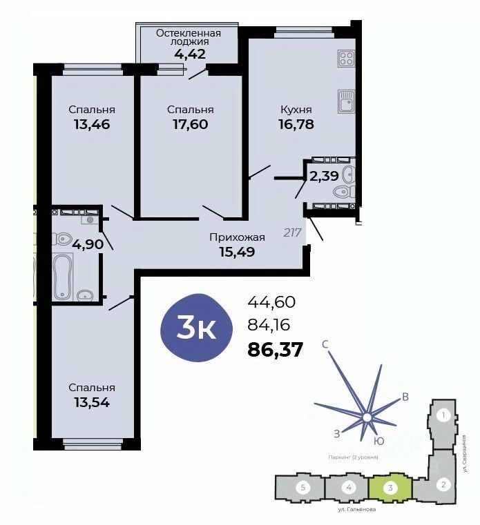 Общая площадь86,37 м2