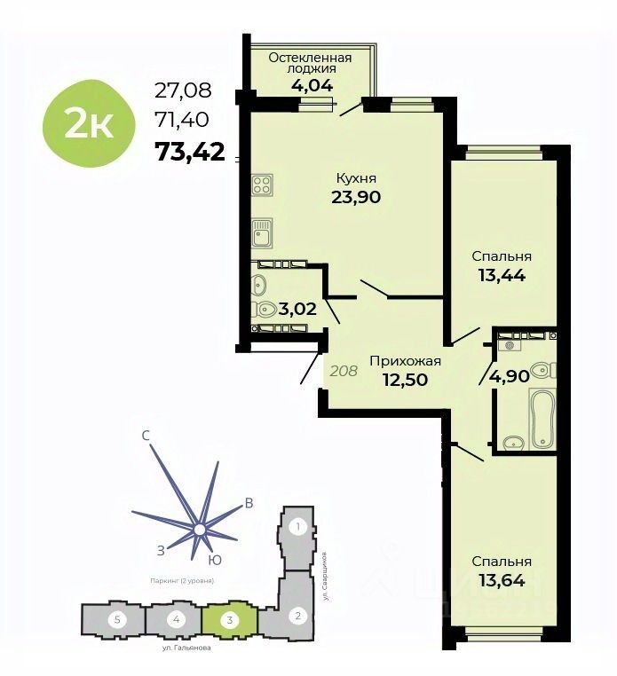 Общая площадь73,42 м2