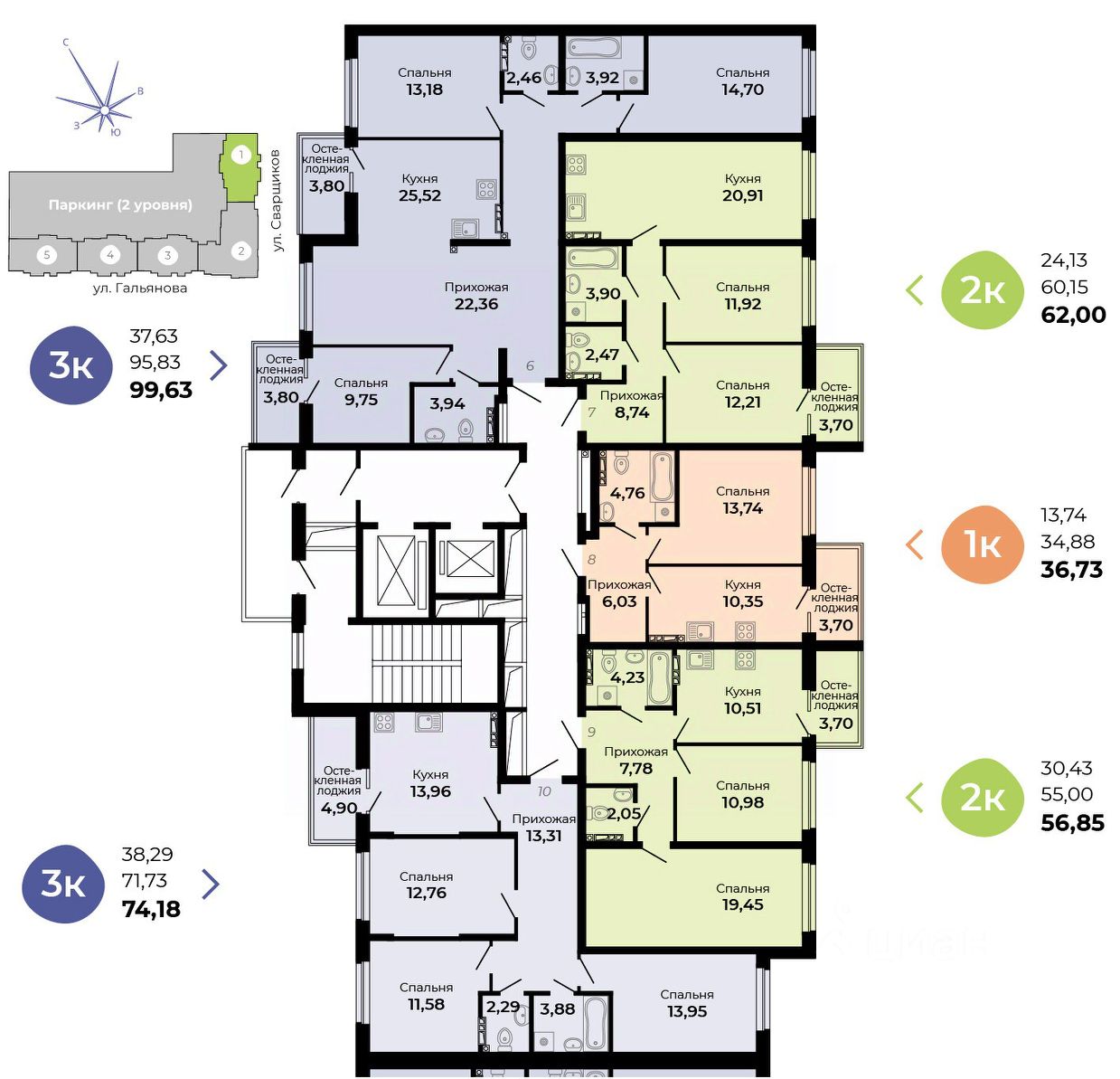 Архитектурная концепция —удобная и продуманная жизнь! Улучшенные планировки, большой просторный двухуровневый паркинг, кладовые!