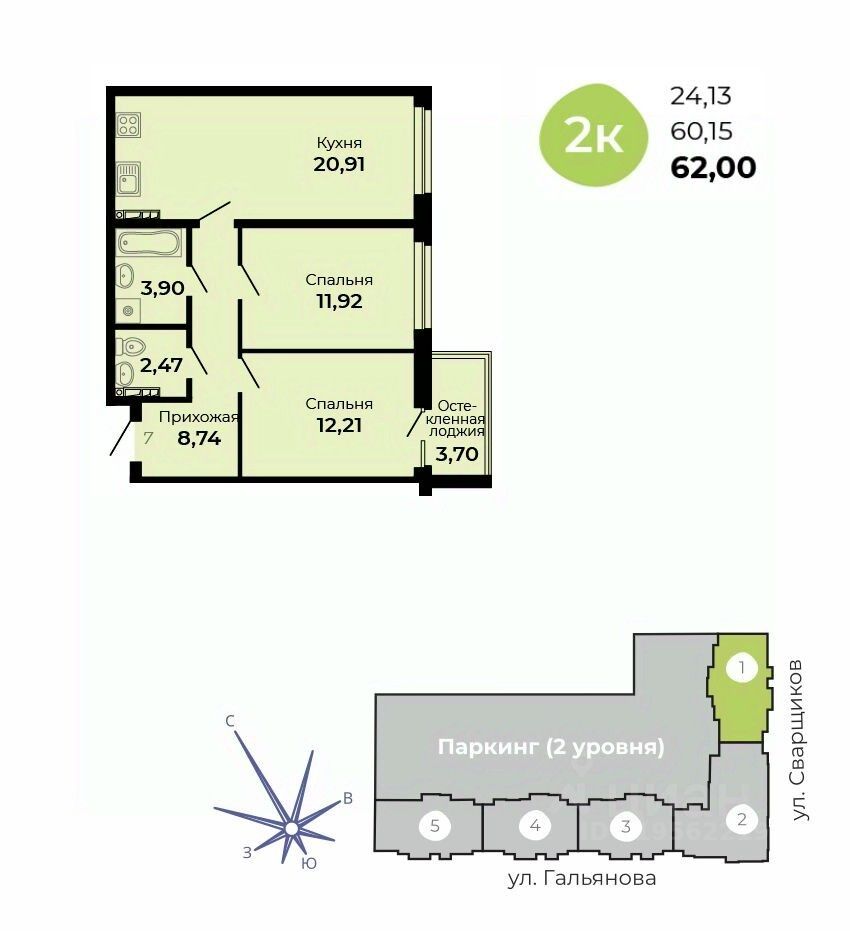 Общая площадь62 м2