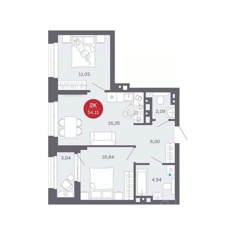 Продаётся 2-комнатная квартира в строящемся доме (Секции 1-4), срок сдачи: II-кв. 2027, общей площадью 51.07 кв.м., на 16 этаже. Новый жилой комплекс ''Сибирская калина'' от застройщика ''СЗ Атлант-Екатеринбург'' расположен по адресу: г. Екатеринбург, улица Титова.