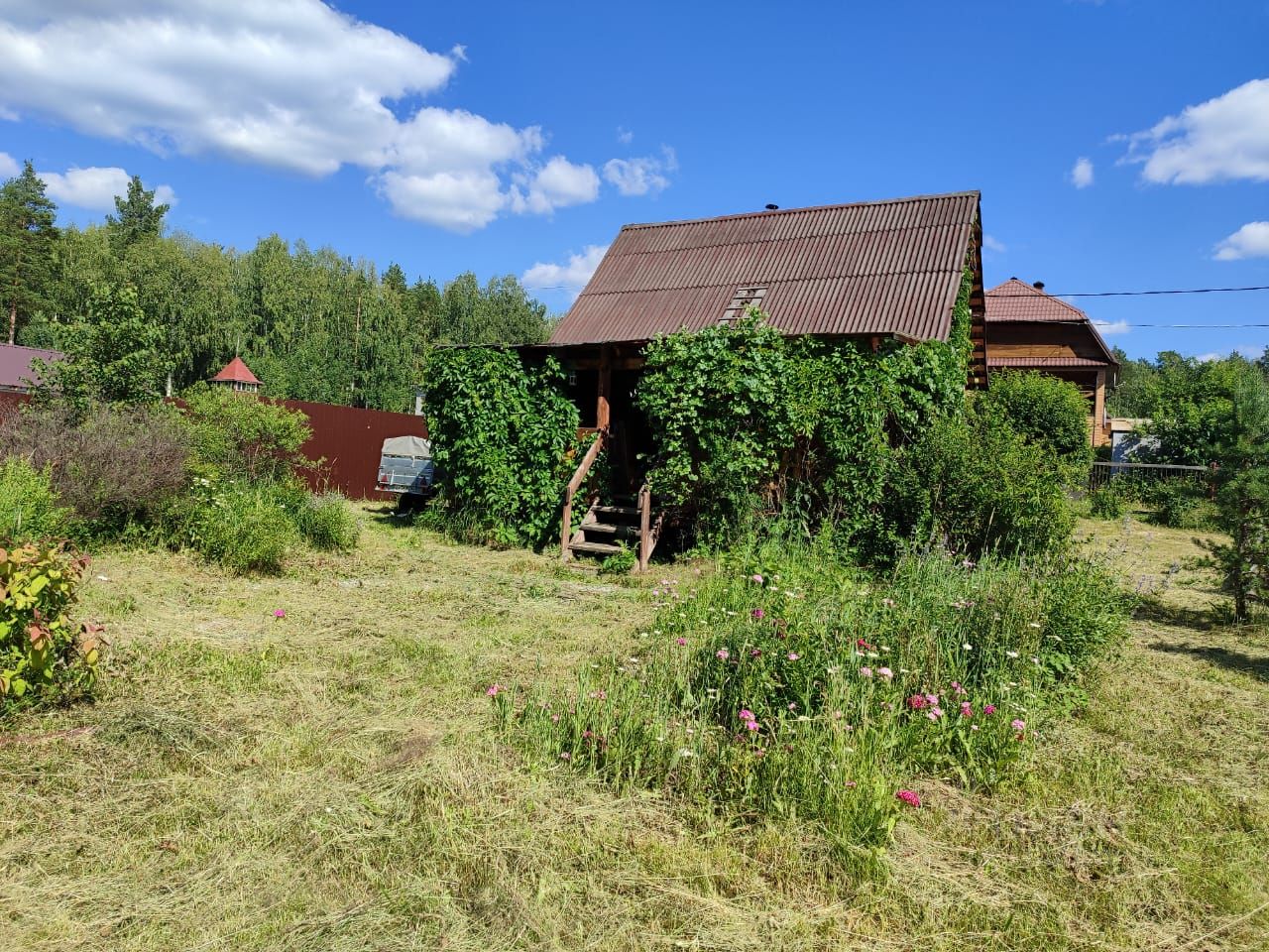 Продается земельный участок 17,5 соток с домом баней в СНТ Аметист. 20 минут на автомобиле от Верхней Пышмы, ходит автобус 103. Зимой дороги чистят, многие соседи проживают круглый год. На участке имеется скважина с чистой питьевой водой, электричество, двух этажный дом-баня 5*6 метров. На территории 3 парковочных места, сарай, туалет, теплица 3*6 метров. Насаждения: яблони, груши, облепиха, малина, смородина, жимолость, клубника. Участок прямоугольной формы, есть возможность построить дом рядом, а можно сместить ближе к лесу. На первом этаже в доме располагается прихожая, комната и парная. Фундамент высокий, залит миксером, снаружи обложен на глубину фундамента глиной.