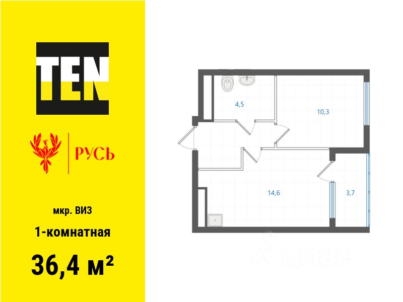 Общая площадь36,4 м2