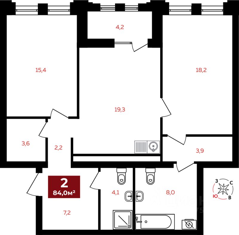 Общая площадь84 м2