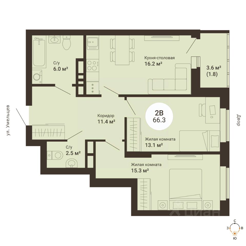 Общая площадь66,3 м2