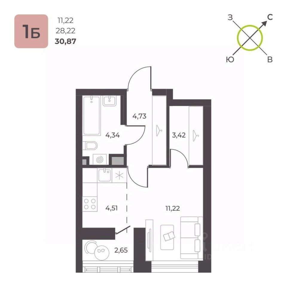Общая площадь30,87 м2