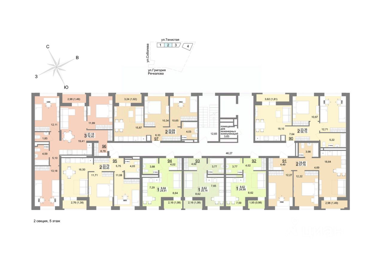 Семейный квартал ''На Тенистой'' будет состоять из 7 домов переменной этажности и паркинга. 1-я и 2-я очереди уже построены, сейчас активно возводится 3-я очередь и готовится к старту 4-ая очередь квартала. Квартал расположен на Широкой речке в самом молодом и современном районе - Академический, на пересечении улиц Тенистая-Краснолесья-Соболева. Вы сможете пользоваться преимуществами сразу нескольких районов: Широкая речка, Академический, Верх-Исетский и Юго-Западный! 30 минут до центра города на машине, 9 минут до Объездной дороги, если хочется выехать на природу. В шаговой доступности есть несколько школ, детских садов и спортивных секций. А еще один детский сад на 350 мест уже построен на территории самого квартала. Закрытый большой двор с ландшафтным дизайном Просторный двор, укрытый от городской суеты стенами домов, объединит все очереди жилого квартала ''На Тенистой''. К завершению строительства общая площадь двора составит впечатляющие 32 тыс. м², предоставляя достаточно места для отдыха и активности на любой вкус. Двор, разделят на рекреационные зоны по возрастам. Будут площадки для малышей и подростков с безопасным покрытием, зоны ворк-аута для предпочитающих здоровый образ жизни, прогулочные дорожки для бесед с друзьями или соседями. Живые зелёные изгороди, словно природная завеса, обеспечат чувство уединённости, защищая жителей первых этажей от посторонних взглядов. Уютный сад с плитняковыми тропинками, изящными перголами и удобными столиками для перекусов на свежем воздухе станет идеальным местом для тёплых семейных вечеров и дружеских встреч. Вдоль прогулочных дорожек установят невысокие уличные фонари, которые создадут атмосферу тепла и уюта. По всему периметру двора появится велодорожка, огибающая игровые зоны. Она станет любимым маршрутом для велосипедных прогулок. Игровые площадки покроют травмобезопасной резиновой крошкой нежных оттенков, подобранных специально для привлечения внимания детей. Разнообразие малых архитектурных форм порадует каждого ребёнка: карусели, качели-гнездышки, батуты, тарзанки и игровые комплексы обеспечат активный досуг и весёлое времяпровождение. Для начинающих футболистов разместится мини-футбольное поле с качественным искусственным газоном, расположенное таким образом, что шум и радость детских игр не потревожат ваш покой. Здесь ваши дети смогут организовывать настоящие турниры и приглашать друзей на матчи, наслаждаясь каждым моментом активного отдыха. Во дворе жилого комплекса ''На Тенистой'' каждый найдёт занятие по душе! Безопасность и комфорт Безопасность - важное преимущество эко-квартала. Вход на территорию осуществляется с помощью Face ID или через мобильное приложение. Для вашего удобства предусмотрено три выхода с подземного паркинга. На территории квартала будет круглосуточное видеонаблюдение, обеспечивающее безопасность вам и вашим маленьким исследователям в каждом уголке двора. Эстетика внутренних пространств Входные группы будут оформлены в соответствии с архитектурной концепцией всего квартала