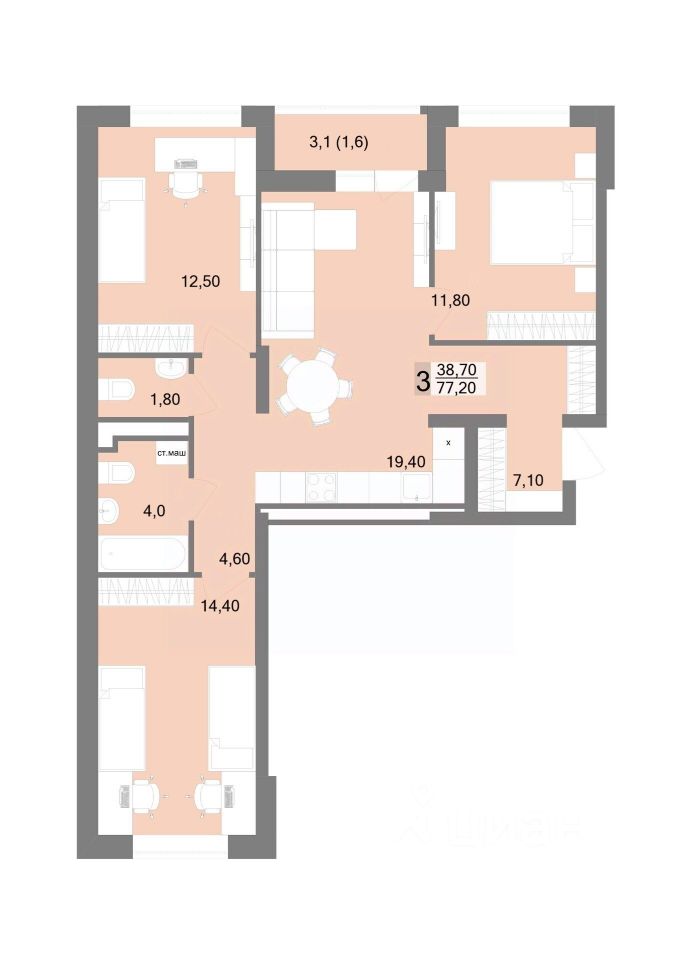 Общая площадь77,2 м2