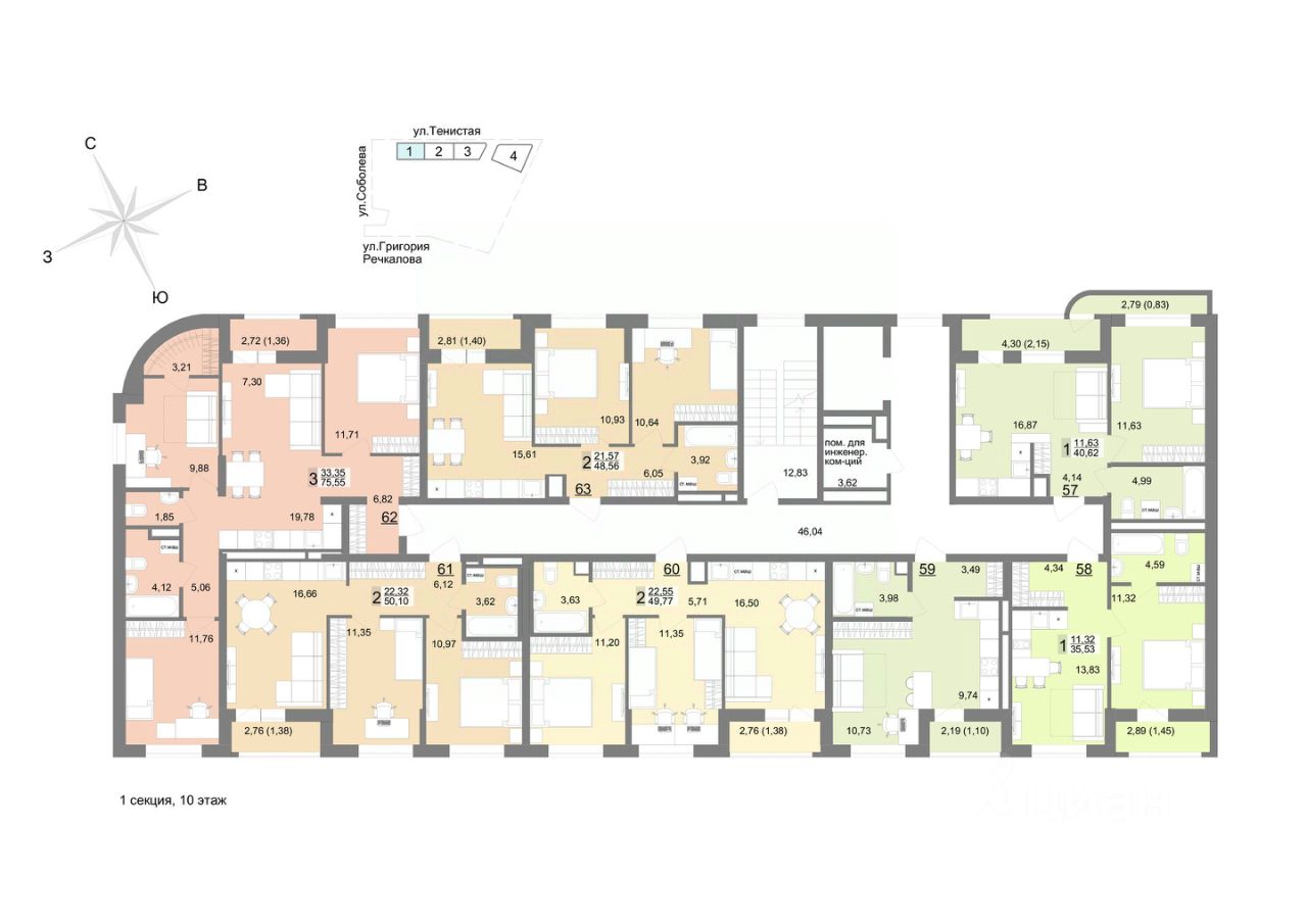 Семейный квартал ''На Тенистой'' будет состоять из 7 домов переменной этажности и паркинга. 1-я и 2-я очереди уже построены, сейчас активно возводится 3-я очередь и готовится к старту 4-ая очередь квартала. Квартал расположен на Широкой речке в самом молодом и современном районе - Академический, на пересечении улиц Тенистая-Краснолесья-Соболева. Вы сможете пользоваться преимуществами сразу нескольких районов: Широкая речка, Академический, Верх-Исетский и Юго-Западный! 30 минут до центра города на машине, 9 минут до Объездной дороги, если хочется выехать на природу. В шаговой доступности есть несколько школ, детских садов и спортивных секций. А еще один детский сад на 350 мест уже построен на территории самого квартала. Закрытый большой двор с ландшафтным дизайном Просторный двор, укрытый от городской суеты стенами домов, объединит все очереди жилого квартала ''На Тенистой''. К завершению строительства общая площадь двора составит впечатляющие 32 тыс. м², предоставляя достаточно места для отдыха и активности на любой вкус. Двор, разделят на рекреационные зоны по возрастам. Будут площадки для малышей и подростков с безопасным покрытием, зоны ворк-аута для предпочитающих здоровый образ жизни, прогулочные дорожки для бесед с друзьями или соседями. Живые зелёные изгороди, словно природная завеса, обеспечат чувство уединённости, защищая жителей первых этажей от посторонних взглядов. Уютный сад с плитняковыми тропинками, изящными перголами и удобными столиками для перекусов на свежем воздухе станет идеальным местом для тёплых семейных вечеров и дружеских встреч. Вдоль прогулочных дорожек установят невысокие уличные фонари, которые создадут атмосферу тепла и уюта. По всему периметру двора появится велодорожка, огибающая игровые зоны. Она станет любимым маршрутом для велосипедных прогулок. Игровые площадки покроют травмобезопасной резиновой крошкой нежных оттенков, подобранных специально для привлечения внимания детей. Разнообразие малых архитектурных форм порадует каждого ребёнка: карусели, качели-гнездышки, батуты, тарзанки и игровые комплексы обеспечат активный досуг и весёлое времяпровождение. Для начинающих футболистов разместится мини-футбольное поле с качественным искусственным газоном, расположенное таким образом, что шум и радость детских игр не потревожат ваш покой. Здесь ваши дети смогут организовывать настоящие турниры и приглашать друзей на матчи, наслаждаясь каждым моментом активного отдыха. Во дворе жилого комплекса ''На Тенистой'' каждый найдёт занятие по душе! Безопасность и комфорт Безопасность - важное преимущество эко-квартала. Вход на территорию осуществляется с помощью Face ID или через мобильное приложение. Для вашего удобства предусмотрено три выхода с подземного паркинга. На территории квартала будет круглосуточное видеонаблюдение, обеспечивающее безопасность вам и вашим маленьким исследователям в каждом уголке двора. Эстетика внутренних пространств Входные группы будут оформлены в соответствии с архитектурной концепцией всего квартала