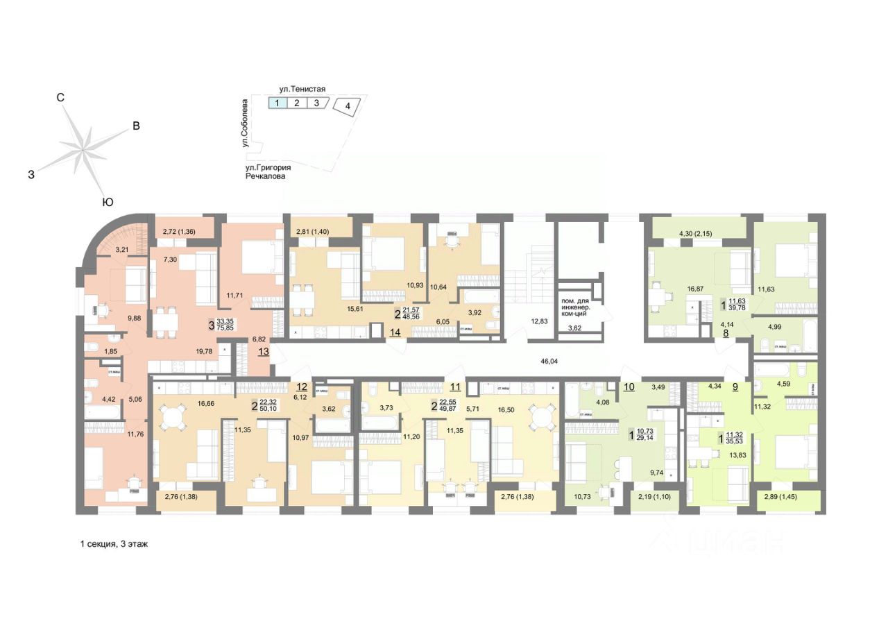 Семейный квартал ''На Тенистой'' будет состоять из 7 домов переменной этажности и паркинга. 1-я и 2-я очереди уже построены, сейчас активно возводится 3-я очередь и готовится к старту 4-ая очередь квартала. Квартал расположен на Широкой речке в самом молодом и современном районе - Академический, на пересечении улиц Тенистая-Краснолесья-Соболева. Вы сможете пользоваться преимуществами сразу нескольких районов: Широкая речка, Академический, Верх-Исетский и Юго-Западный! 30 минут до центра города на машине, 9 минут до Объездной дороги, если хочется выехать на природу. В шаговой доступности есть несколько школ, детских садов и спортивных секций. А еще один детский сад на 350 мест уже построен на территории самого квартала. Закрытый большой двор с ландшафтным дизайном Просторный двор, укрытый от городской суеты стенами домов, объединит все очереди жилого квартала ''На Тенистой''. К завершению строительства общая площадь двора составит впечатляющие 32 тыс. м², предоставляя достаточно места для отдыха и активности на любой вкус. Двор, разделят на рекреационные зоны по возрастам. Будут площадки для малышей и подростков с безопасным покрытием, зоны ворк-аута для предпочитающих здоровый образ жизни, прогулочные дорожки для бесед с друзьями или соседями. Живые зелёные изгороди, словно природная завеса, обеспечат чувство уединённости, защищая жителей первых этажей от посторонних взглядов. Уютный сад с плитняковыми тропинками, изящными перголами и удобными столиками для перекусов на свежем воздухе станет идеальным местом для тёплых семейных вечеров и дружеских встреч. Вдоль прогулочных дорожек установят невысокие уличные фонари, которые создадут атмосферу тепла и уюта. По всему периметру двора появится велодорожка, огибающая игровые зоны. Она станет любимым маршрутом для велосипедных прогулок. Игровые площадки покроют травмобезопасной резиновой крошкой нежных оттенков, подобранных специально для привлечения внимания детей. Разнообразие малых архитектурных форм порадует каждого ребёнка: карусели, качели-гнездышки, батуты, тарзанки и игровые комплексы обеспечат активный досуг и весёлое времяпровождение. Для начинающих футболистов разместится мини-футбольное поле с качественным искусственным газоном, расположенное таким образом, что шум и радость детских игр не потревожат ваш покой. Здесь ваши дети смогут организовывать настоящие турниры и приглашать друзей на матчи, наслаждаясь каждым моментом активного отдыха. Во дворе жилого комплекса ''На Тенистой'' каждый найдёт занятие по душе! Безопасность и комфорт Безопасность - важное преимущество эко-квартала. Вход на территорию осуществляется с помощью Face ID или через мобильное приложение. Для вашего удобства предусмотрено три выхода с подземного паркинга. На территории квартала будет круглосуточное видеонаблюдение, обеспечивающее безопасность вам и вашим маленьким исследователям в каждом уголке двора. Эстетика внутренних пространств Входные группы будут оформлены в соответствии с архитектурной концепцией всего квартала