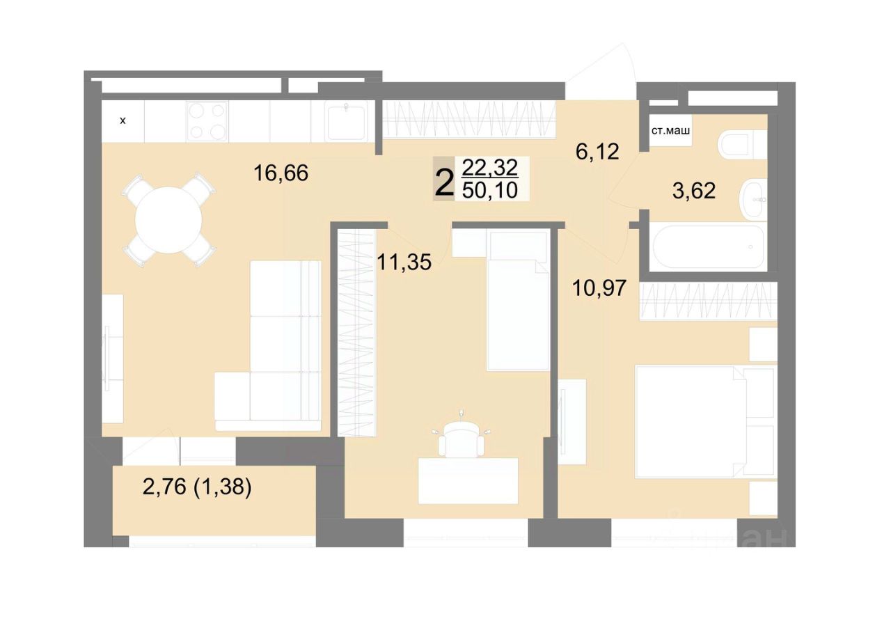 Общая площадь50,1 м2