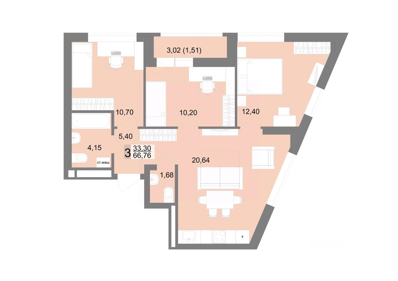 Общая площадь66,76 м2