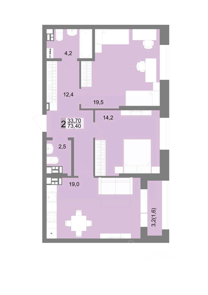 Жилая площадь33,7 м2