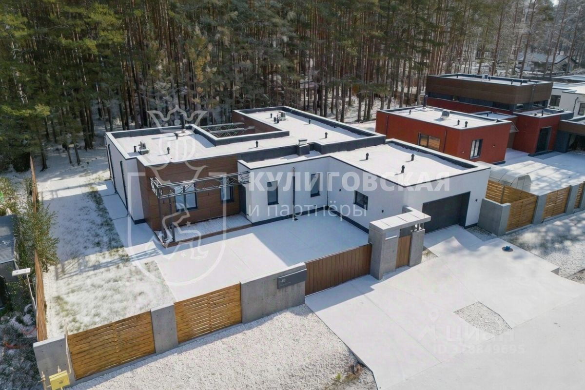 Сдается в аренду новый дом с мебелью и техникой с современным дизайнерским ремонтом с плоской крышей, панорамными окнами и террасами, собственным сосновым бором и выходом в лес в КП Заповедник кв-л ''Орел''.