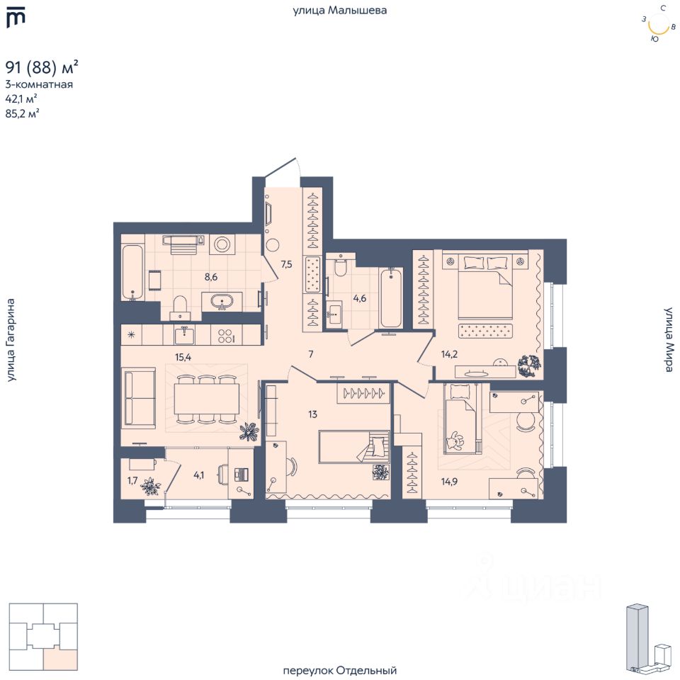 продам 3-к, Отдельный переулок, 520 113 581 ₽