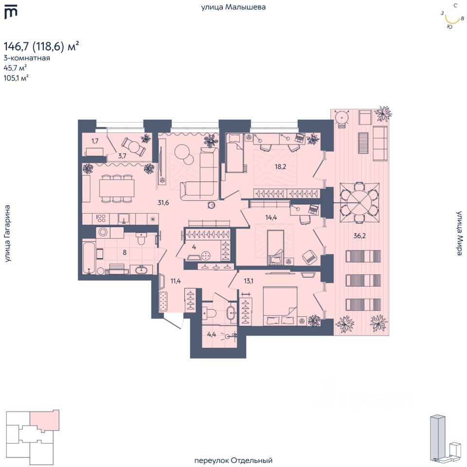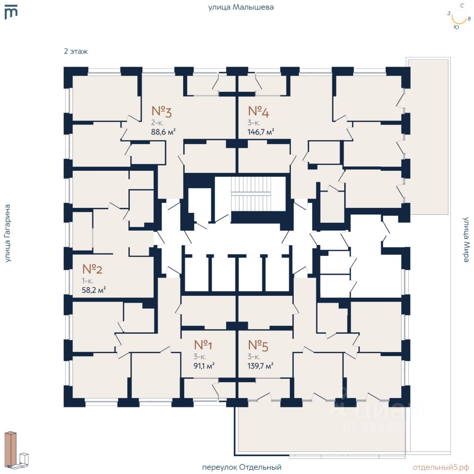 Новый дом в любимом районе Отдельный, 5 — это жилой комплекс из двух секций — 29 и 8 этажей, объединённых стилобатом, с семейным кафе и коммерческими помещениями на первом этаже, где арендаторы будут подобраны с учётом семейного позиционирования комплекса. 5 преимуществ ''Отдельного'': 1. Семейные планировки Мы планировали дом таким образом, чтобы в нём было удобно семьям с детьми. В доме нет квартир-студий, минимальная площадь 1-комнатной квартиры составляет 58 квадратных метров. В квартирах предусмотрены хоз. комнаты, большие кухни-гостиные, мастер-спальни и кабинеты. Места для колясок и велосипедов предусмотрены на каждом этаже. На -1 этаже располагаются 69 кладовых. 2. Закрытый, безопасный, интересный двор Организация двора предполагает 2 уровня благоустройства. Первый уровень рассчитан преимущественно на детей 3 — 12 лет. Здесь предусмотрены несколько зон активности с горками, качелями, дорожками для катания на самокатах и велосипедах (змейка и волна), безопасный скалодром и песочница под теневым парусом. Второй уровень — это кровля стилобата. Здесь нашлось место для теплицы-оранжереи и зоны для пикников, зоны с песочницей для самых маленьких и мам, уединённые места для компаний и зона с шезлонгами, где можно погреться на солнце. Для детей постарше здесь предусмотрена большая винтовая горка по которой можно спуститься вниз и подняться обратно. 3. Потолки 3 метра с запасом под отделку во всех квартирах Создают ощущение простора, визуально увеличивают объём помещения и улучшают циркуляцию воздуха. 4. 4 из 5 лифтов спускаются в паркинг С продуктами или детской коляской любой из 4 лифтов всегда ждёт вас в паркинге. Каждый лифт грузоподъемностью не менее 1000 кг. 5. Машиноместо для каждой резиденции В тёплом подземном паркинге предусмотрено 171 машиноместо, вмещающее 195 автомобилей, а также 10 мотомест — на 188 резиденций. Так же есть машиноместа для коммерческих помещений. Машиноместа доступны к покупке для всех резидентов комплекса, независимо от площади приобретённой квартиры. Есть возможность подключить зарядную станцию 220В на любом машиноместе. Технические условия для подключения владельцы электрокаров смогут получить в УК, но только после ввода дома в эксплуатацию. Расположение Втузгородок. Здание располагается в Кировском районе Екатеринбурга в границах улиц Малышева — Мира — переулка Отдельный — Гагарина, по адресу: переулок Отдельный, 5. Важно, что в нашем доме, находящемся рядом с главными улицами города — улицей Малышева и проспектом Ленина, тихо даже с открытыми окнами.