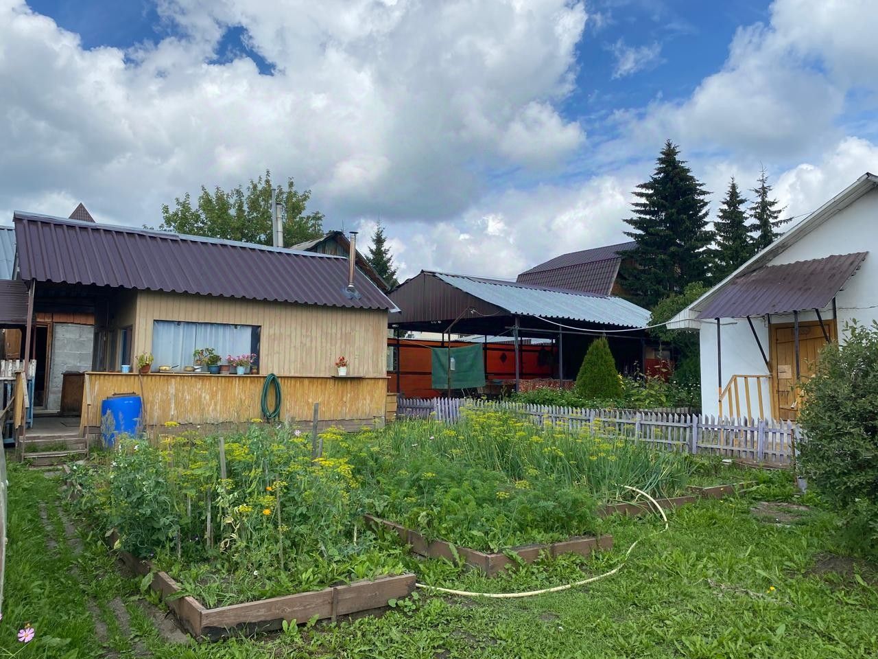 ### На участке имеется: * **Жилой дом** с мебелью и отоплением * **Гараж** с капитальной смотровой ямой * **Погреб** для хранения заготовок * **Баня** с котлом отопления * **Дровяник** * **Колодец** * **Теплица** * **Настольный теннис** под навесом