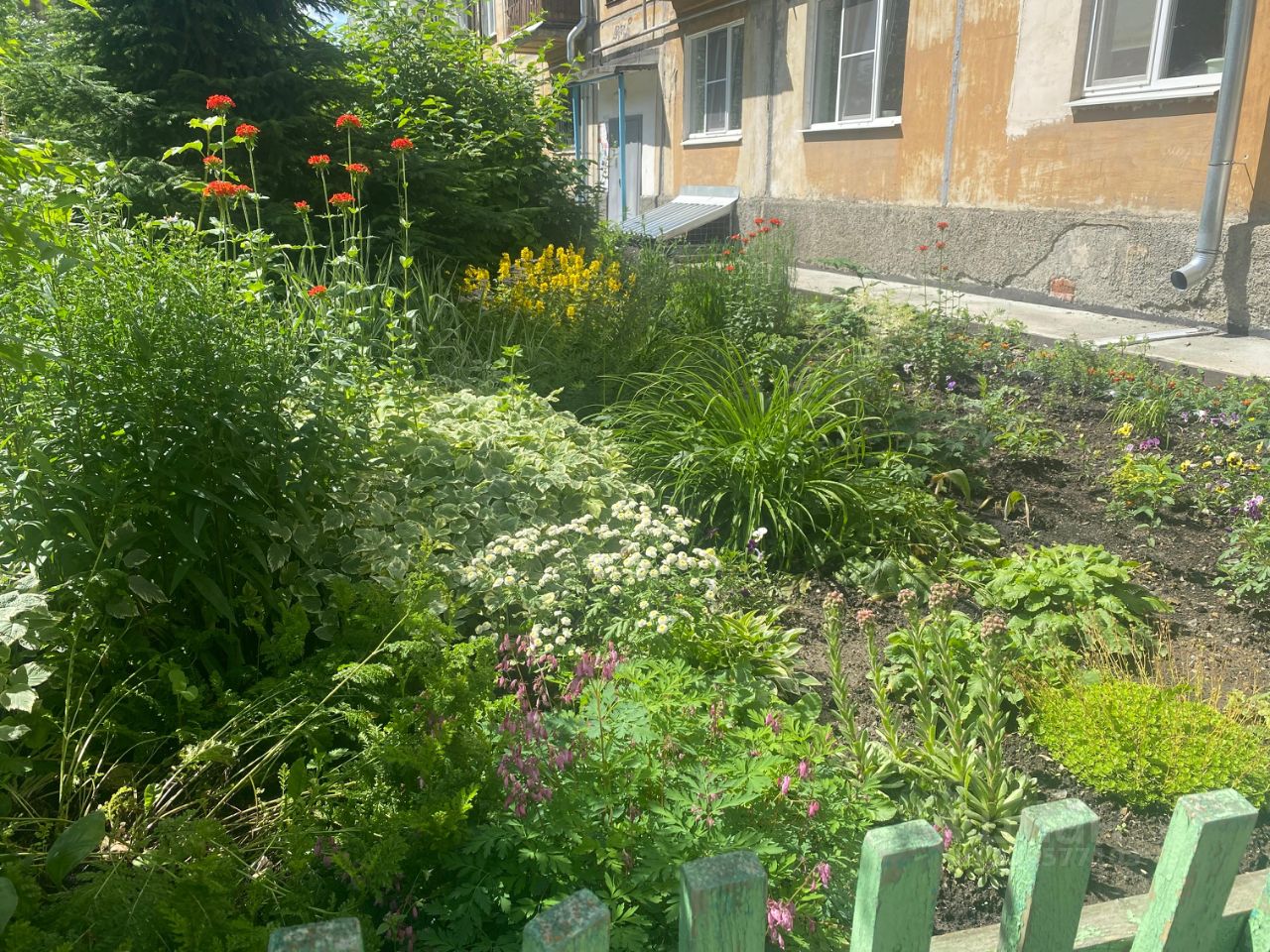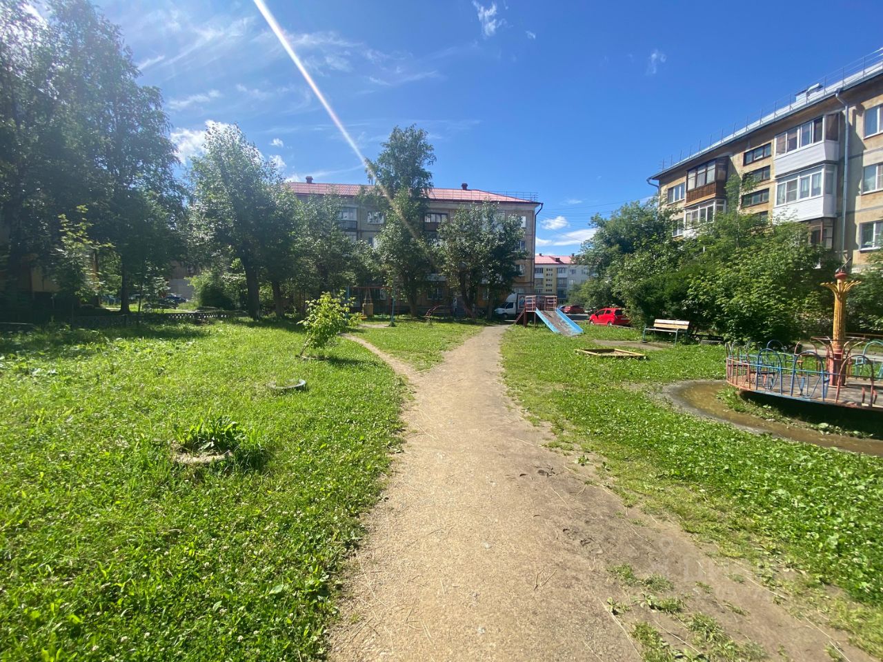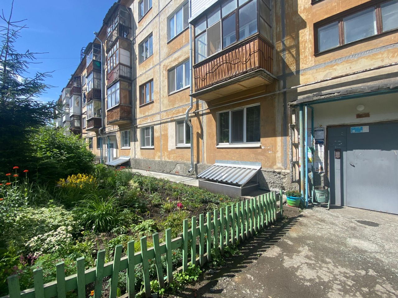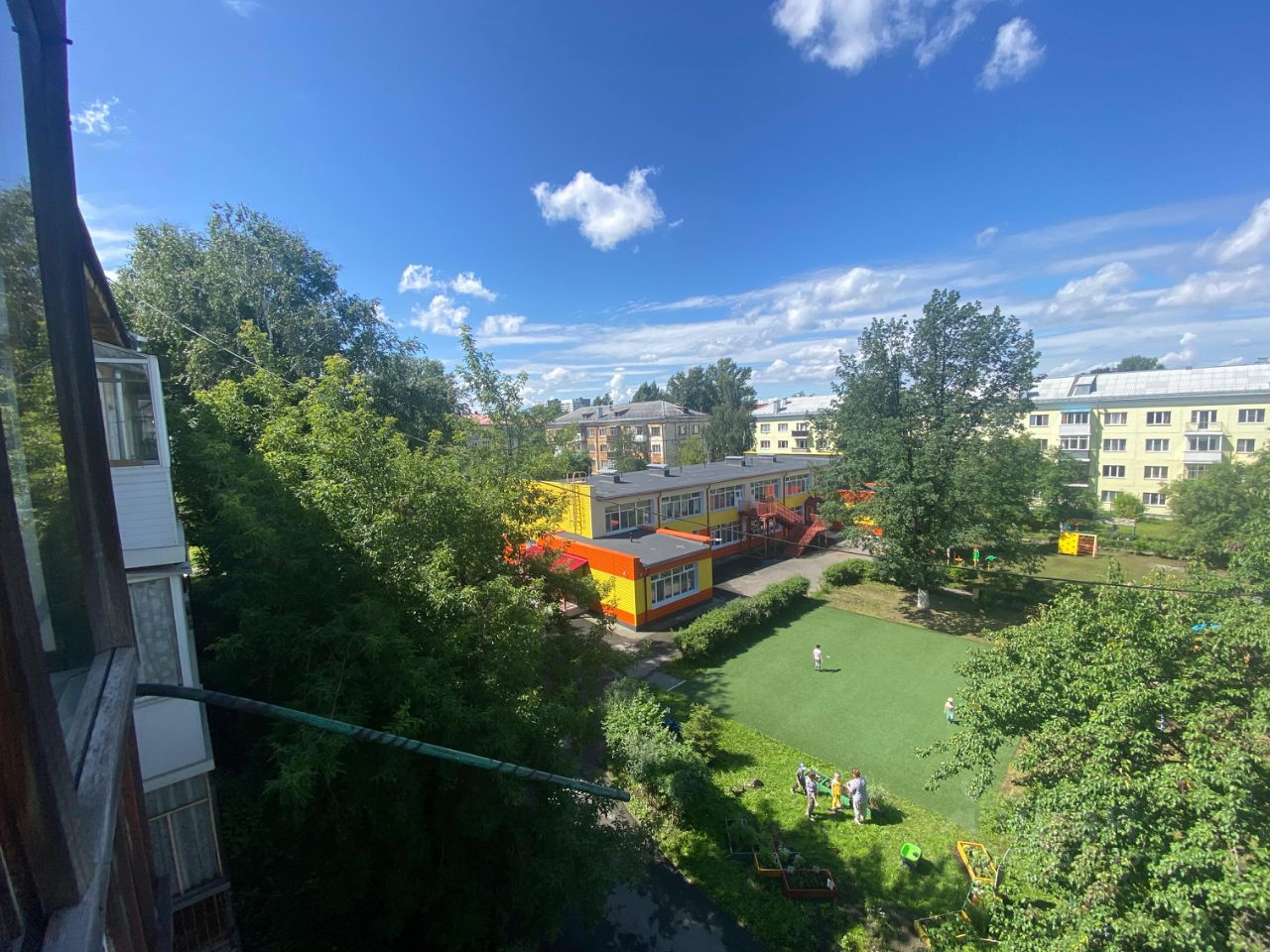 Зеленый двор, большая парковка, вдали от проезжей части, с удобным выездом из города.