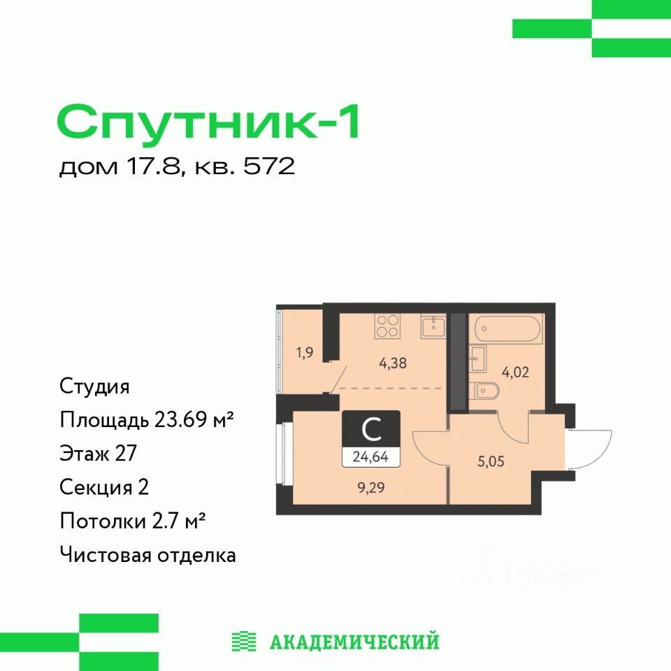 продам 1-к, Академика Ландау, 17/84 246 600 ₽
