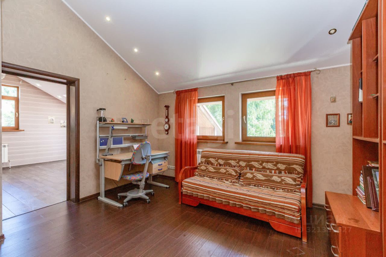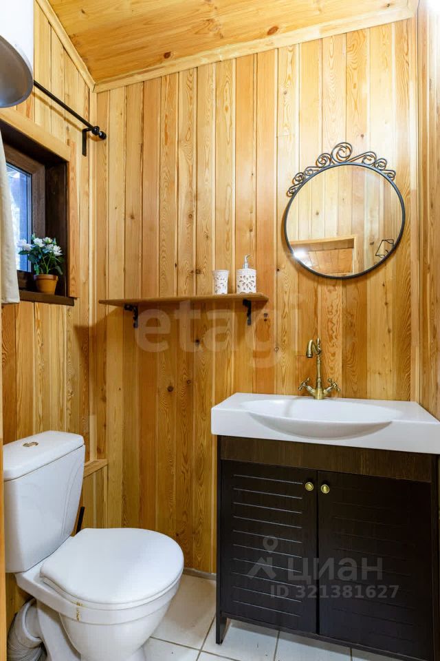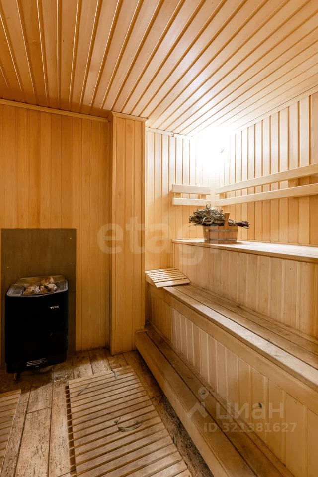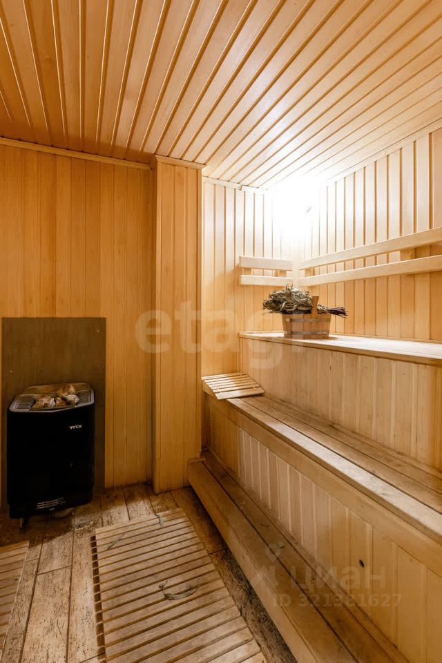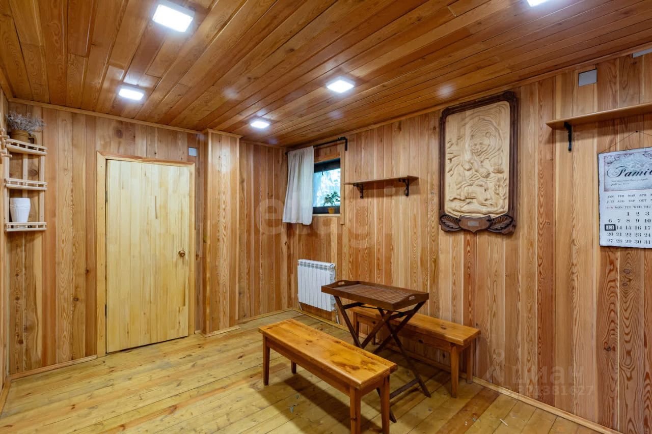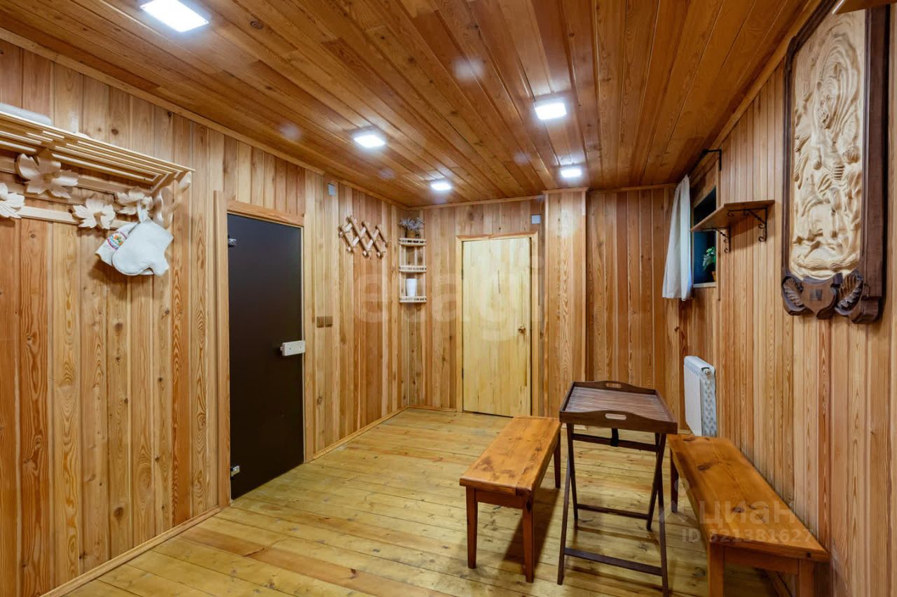 Гостевой дом из сруба площадью 113 кв. м. включает две комнаты на первом этаже и мансардный уровень, санузел, а также автономный банный комплекс с комнатой отдыха, душевой и парной. К дому примыкает помещение для хранения инвентаря. На участке оборудован открытый стационарный бассейн глубиной 180 см. Объект обеспечен полным комплексом инженерных коммуникаций: централизованное водоснабжение от артезианской скважины, автономное электроснабжение от собственной подстанции с основным и резервным вводами, магистральный газ, центральная канализация, высокоскоростной интернет и кабельное телевидение.