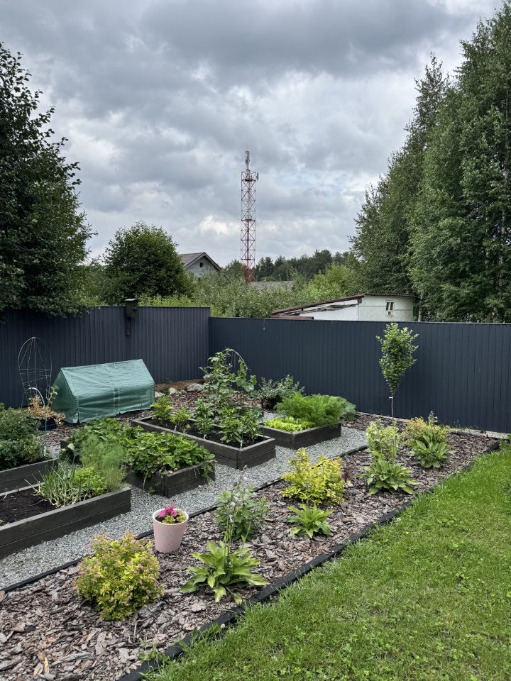 Участок 10 соток. На котором распологается сам дом, парковка на 4 автомобиля, большая беседка, баня, сад, хоз.блок.
