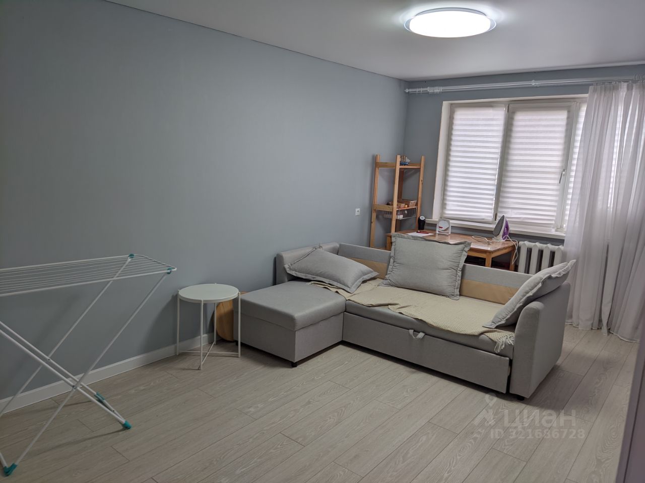 Мебель: два вместительных шкафа-купе, двуспальная кровать, двуспальный раскладной диван, полноценная кухня, рабочий стол, стеллаж. Техника: электрическая плита с духовым шкафом, новый холодильник, новая стиральная машина.