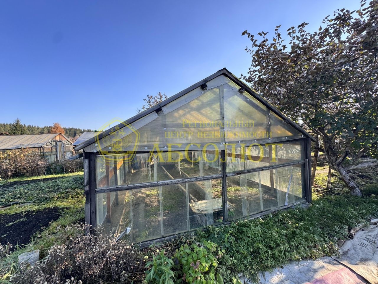 На участке 5.5 соток растут вишни, яблони, смородина, крыжовник, малина, клубника, земляника и жимолость. Настоящий фруктовый рай! Так же имеются 2 готовые теплицы и кладовая для инструментов.