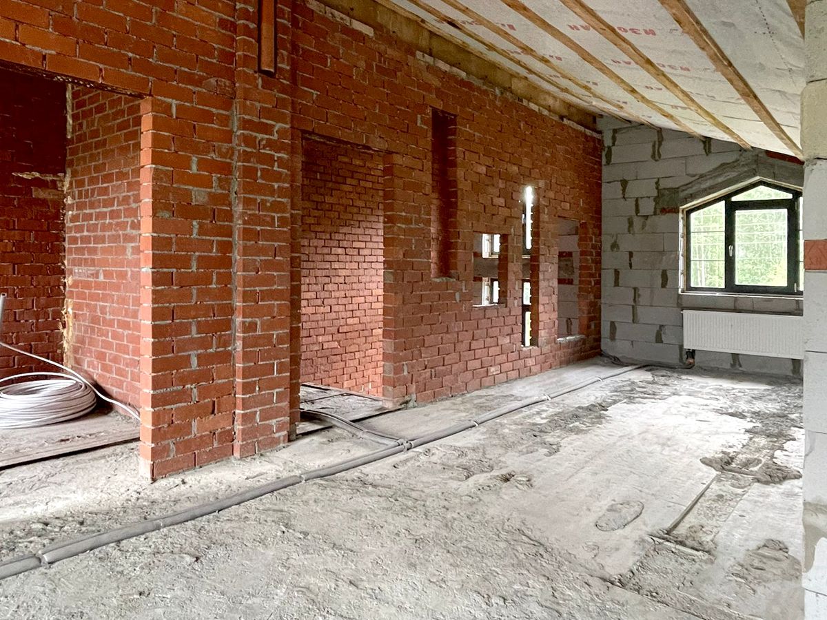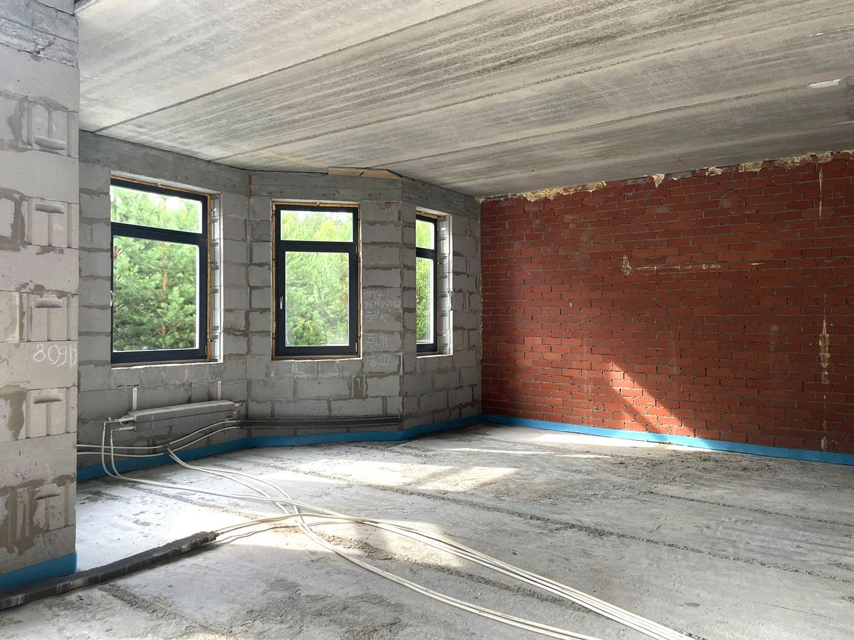 В дом заведено электричество и подключено электропитание. Котельная газовая с резервным электрическим котлом, котельная запущена. Произведена разводка по дому водоснабжения по санузлам. Водоснабжение запущено. Произведена разводка системы отопления, установлены ''дежурные'' радиаторы для поддержания плюсовой температуры зимой. Отопление запущено. Произведена разводка канализации, в санузлах установлены инсталяции для унитазов. Шамбо отсутствует.
