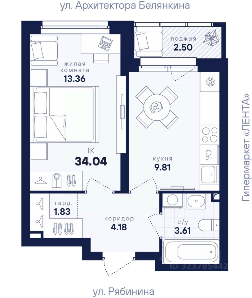 Общая площадь34,04 м2