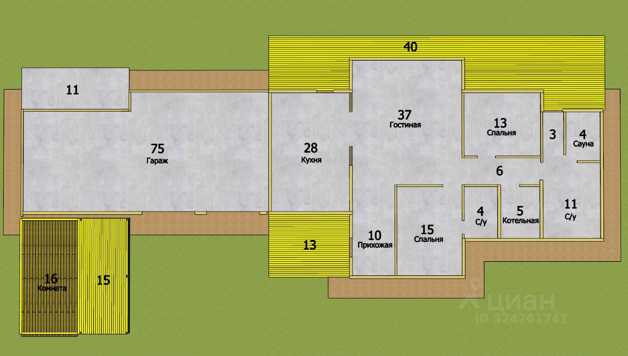 Общая площадь построек 404 кв. м