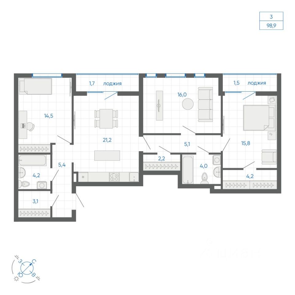 Общая площадь98,9 м2