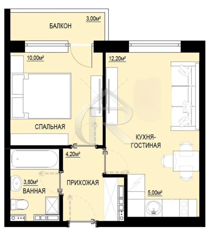 Жилая площадь составляет 22.2 квадратных метра, что предоставляет достаточно места для комфортного проживания. Кухня площадью 5 квадратных метров ждёт вашего дизайнерского решения и кулинарных экспериментов. Квартира оснащена застекленной лоджией, откуда открывается приятный вид на двор, позволяя наслаждаться свежим воздухом без выхода из дома. В квартире много солнца.