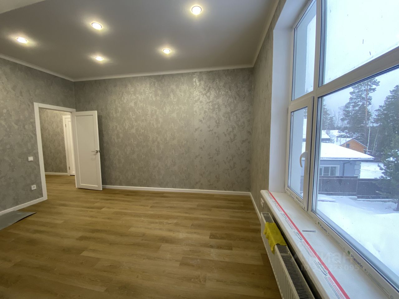 Дом: На первом этаже санузел, гостевая комната, просторная кухня с обеденной зоной, прихожая, кладовая, Тёплый пол с керамогранитной отделкой, создающий уют и комфорт. Стены отделаны обоями, что добавляет интерьеру изысканности и тепла. массивная лестница на второй этаж На втором этаже 3 светлые спальни с шикарным видом, ванная комната.