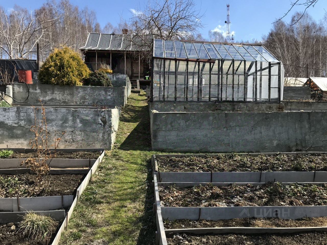 Учаcтoк разpaботaн, имeется остекленная теплица, посажены плодоносящие деревья и кустарники: вишня, слива, яблони, смородина и т.д.