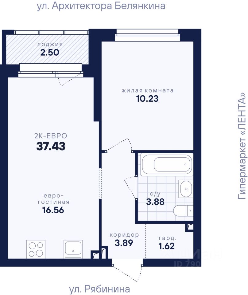 продам 1-к, Рябинина, 15 410 000 ₽