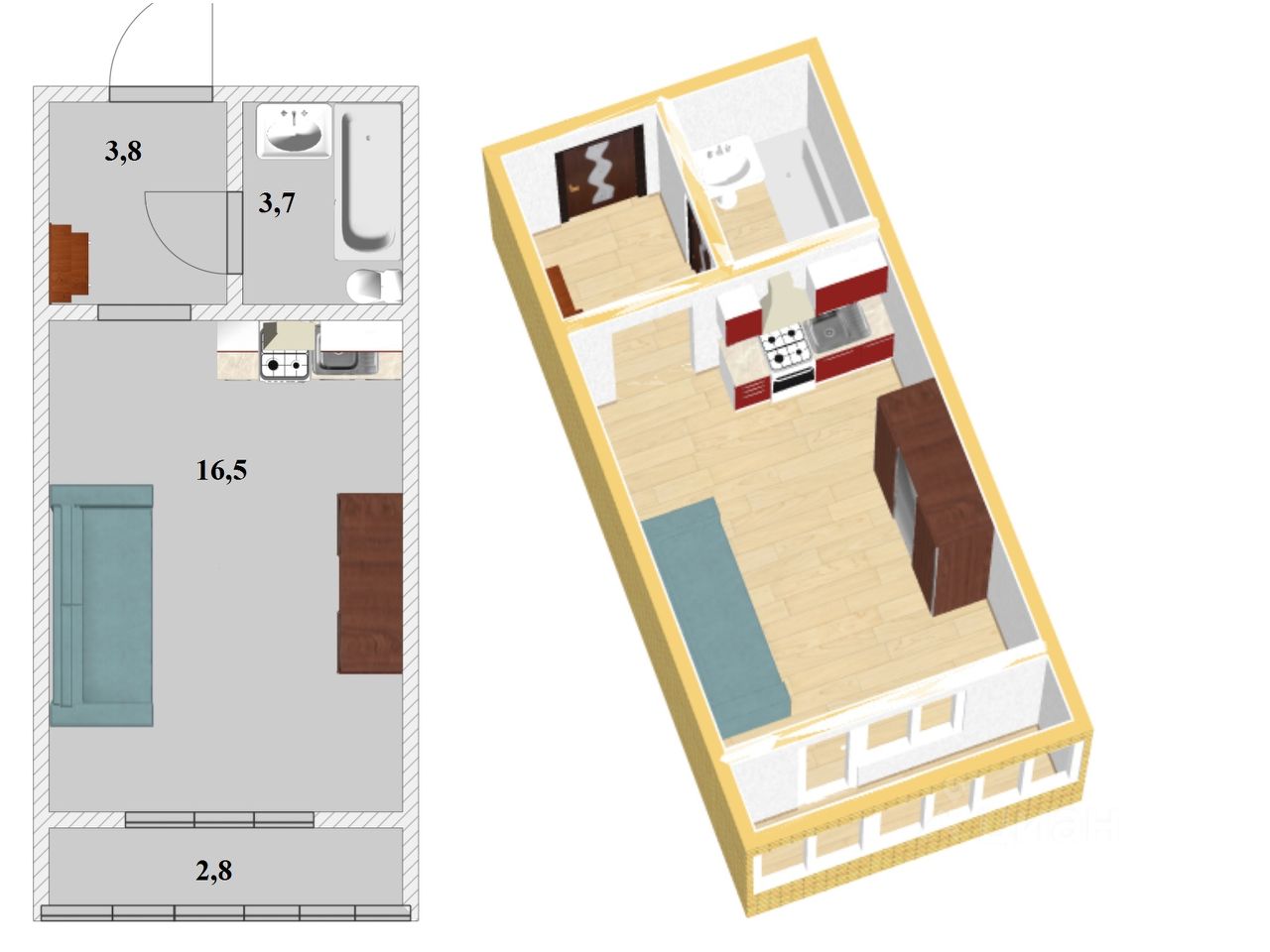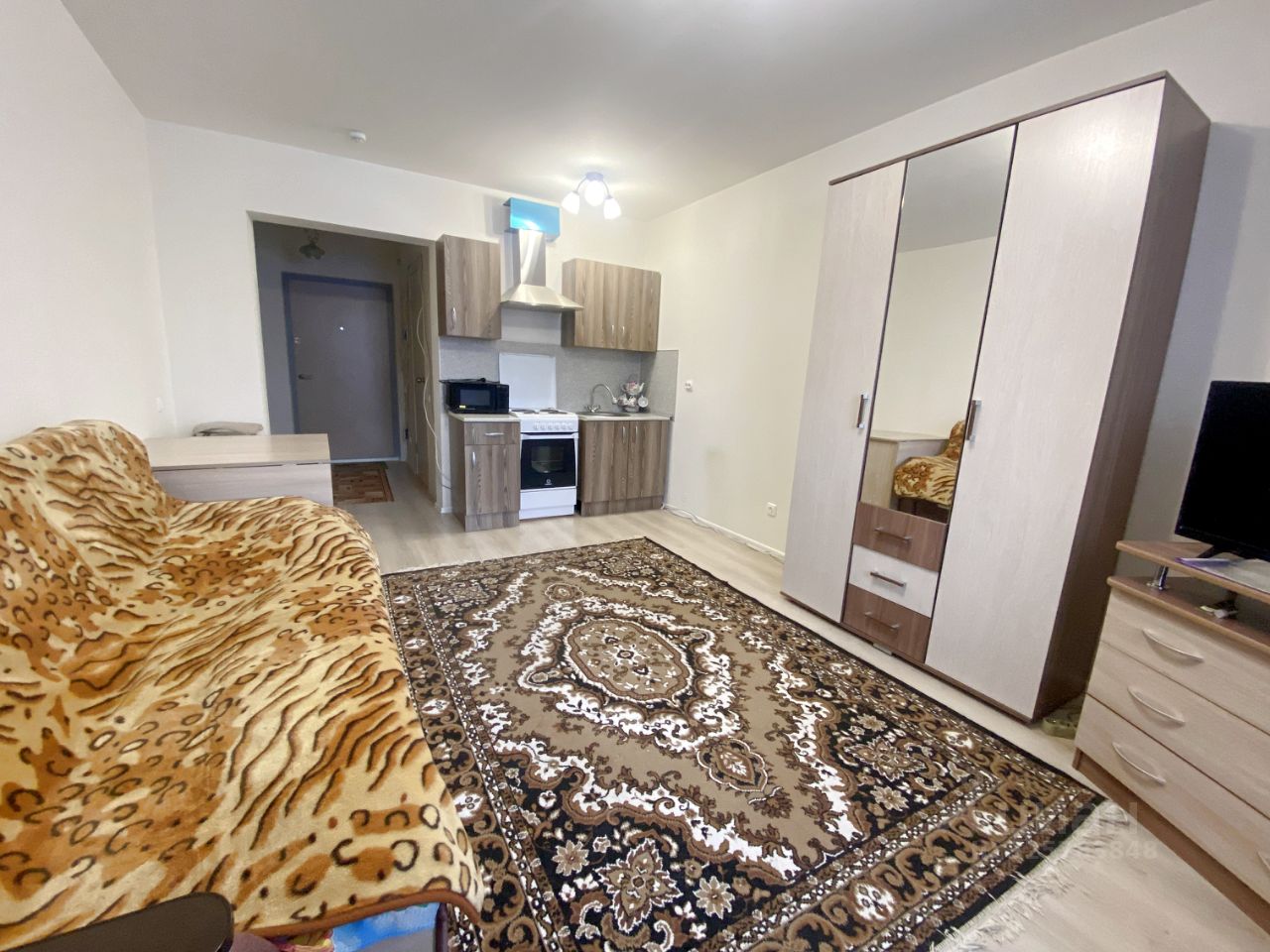 Объект N 196659. Уютная студия 24 кв.м. с хорошей планировкой. ЖК ''Мичуринский''. Комната 16,5 кв.м. приближенная к квадратной (4,80 х 3,44), вместительная прихожая 3,8 кв.м. (2,33 х 1,64) и просторный сан. узел. , остекленная лоджия 2,8 кв.м. В квартире остается мебель, кухонный гарнитур. Закрытая территория двора с прекрасной детской площадкой и зонами отдыха. Квартира освобождена, быстрый выход на сделку.